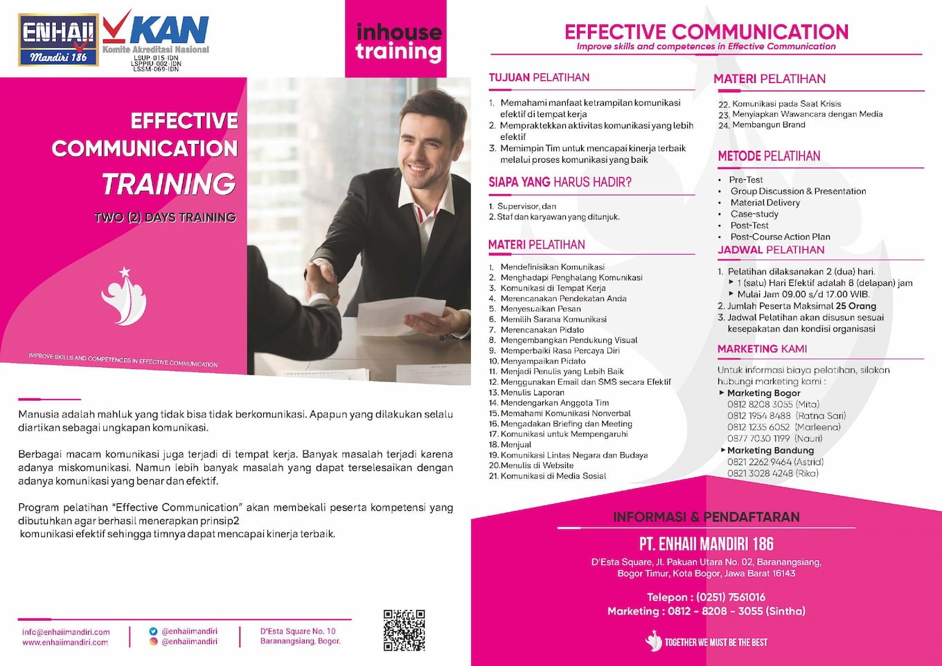 Untuk Informasi Biaya Pelatihan, silahkan hubungi marketing kami: